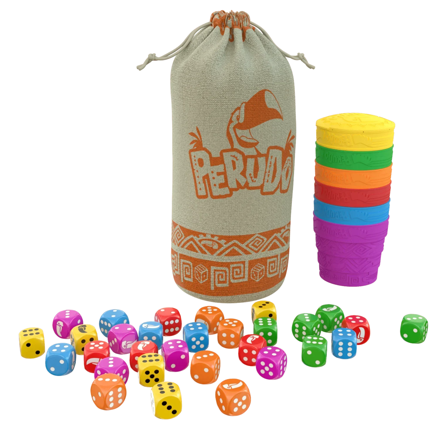 Perudo (ou le jeu du menteur) est un jeu de dés mêlant bluff, stratégie et intuition. Chaque joueur dispose de cinq dés qu’il lance secrètement sous un gobelet. Le but est de deviner combien de dés d’une même valeur se trouvent sur la table, en tenant compte de ses propres dés et des annonces des autres joueurs. À tour de rôle, chacun fait une mise (par exemple « quatre 3 ») ou met en doute la précédente en disant « Dudo ». Lorsque quelqu’un doute, tous les dés sont révélés : si la mise était correcte, le douteur perd un dé ; sinon, c’est le joueur précédent qui en perd un. Le jeu continue ainsi, mêlant observation, bluff et déduction, jusqu’à ce qu’il ne reste qu’un seul joueur avec des dés.