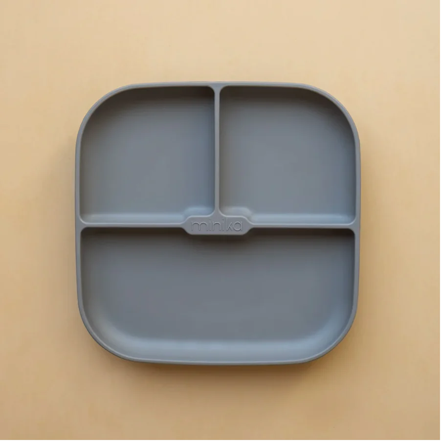Assiette de silicone avec succion. Détails : Silicone alimentaire Sans BPA Entretien : Laver avec du savon et un chiffon mouillé ou au lave-vaisselle Va au micro-ondes et au congélateur Dimensions (cm) : 17 x 17