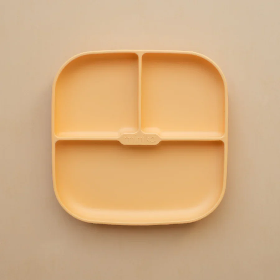 Assiette de silicone avec succion. Détails : Silicone alimentaire Sans BPA Entretien : Laver avec du savon et un chiffon mouillé ou au lave-vaisselle Va au micro-ondes et au congélateur Dimensions (cm) : 17 x 17