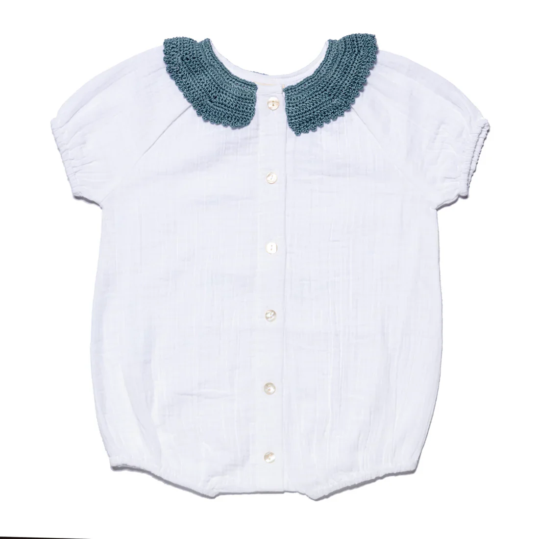 La barboteuse Phoebe est notre coup de coeur.Sa coupe ample est rehaussée d’élastiques aux bras et aux jambes pour une jolie coupe ballon. Elle est ornée d’un col en crochet élaboré et de magnifiques boutons en nacre sur le devant. Fabriquée en mousseline de coton biologique douce et en fil de coton biologique, elle s’adoucit […]