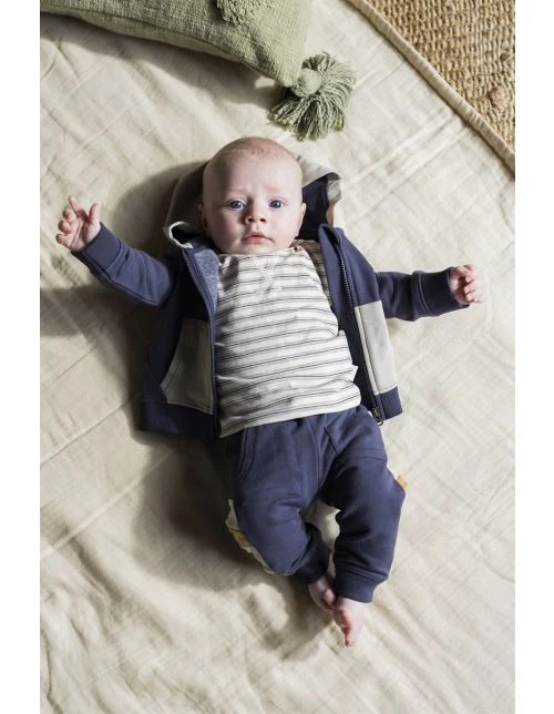 Cardigan confortable et sportif de Noppies Baby. Le cardigan Moultrie est original en raison de la couleur contrastée de la capuche et des poches. Plus doux que ça, ce n’est pas possible ! Ce tissu ultra doux est très agréable pour la peau fragile de votre bébé. L’élasticité du tissu assure un grand confort. Ce vêtement contient entre 50 et 70 % de fibres recyclées. L’utilisation de fibres recyclées minimise l’impact environnemental. Vous avez ainsi la certitude qu’avec ce vêtement, vous faites le choix responsable pour vous-même et la génération qui suivra.