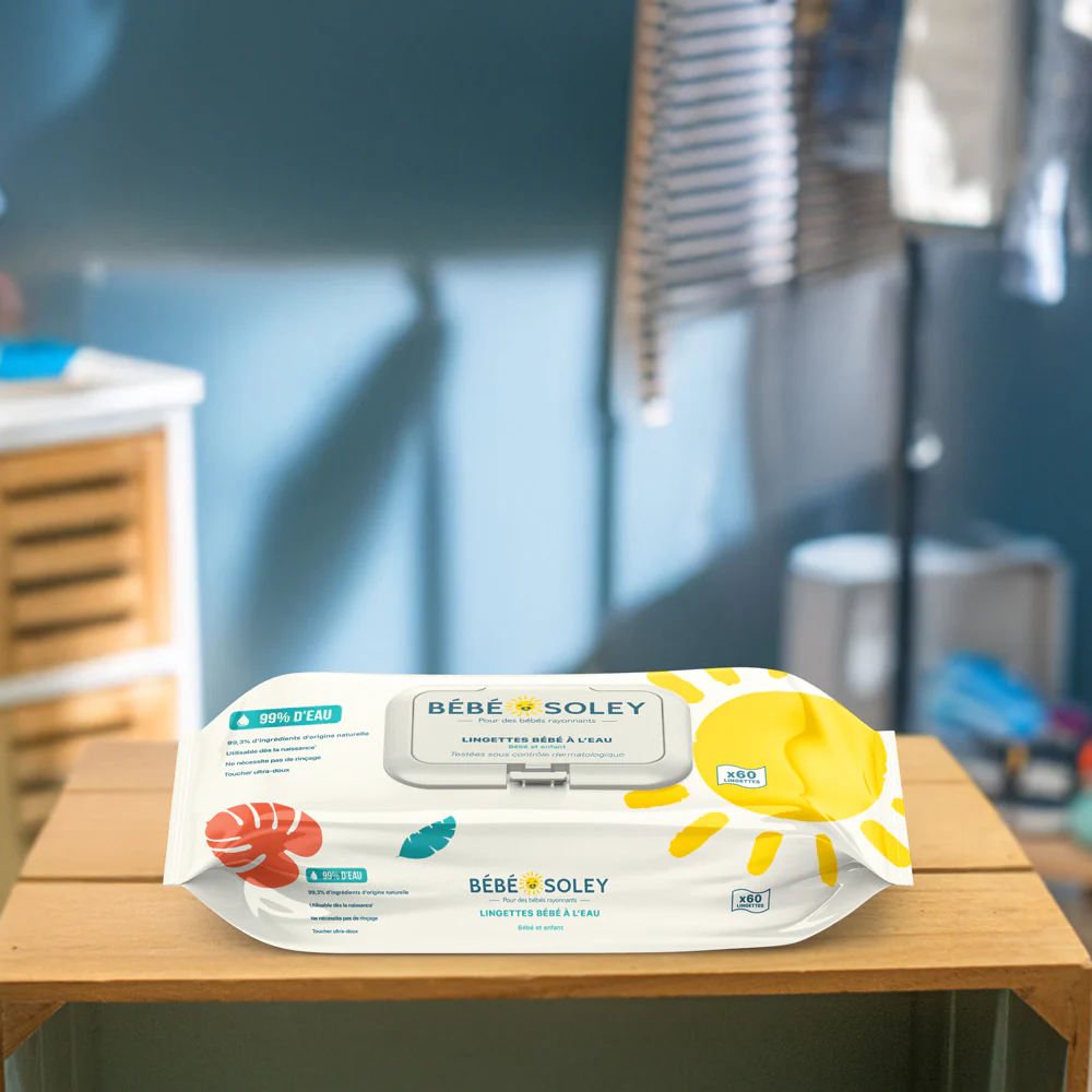 Les lingettes Bébé Soley sont formulées pour respecter les peaux sensibles, dès les premiers jours.
