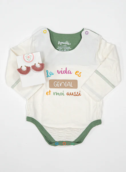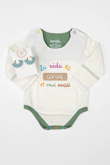 – un body évolutif Genial Apushi avec notre phrase iconique : La vida es genial… et moi aussi.