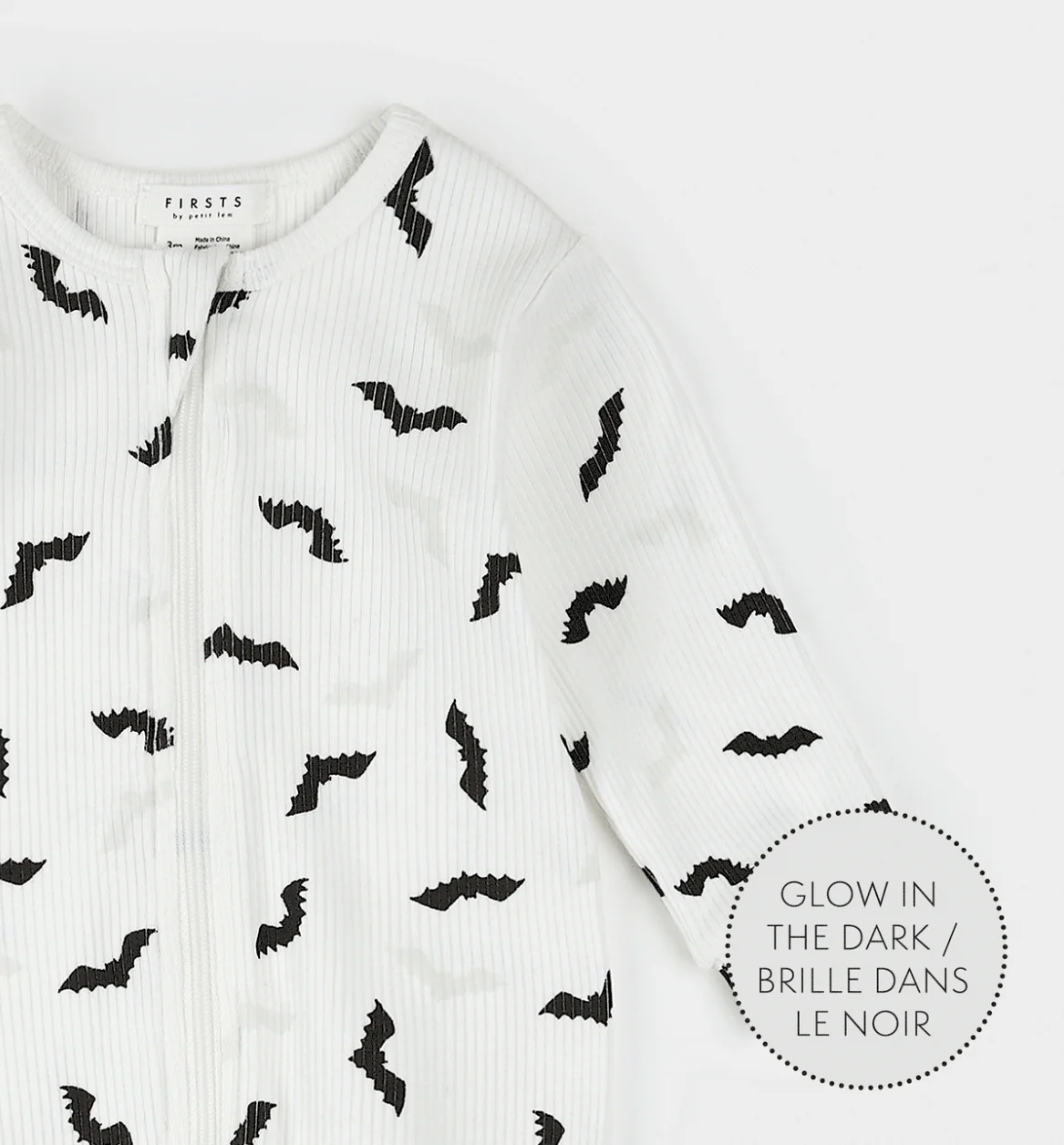 Ajoutez une touche de frisson à l’heure du dodo avec cette dormeuse à imprimé de chauves-souris qui brille dans le noir! Conçue en coton biologique avec un tricot côtelé plus épais, elle est douce et bien chaude pour se faire de petites frayeurs tout en confort. Les pieds intégrés gardent les tout-petits bien au chaud, et la fermeture éclair à double sens facilite les changements. Il y a aussi un pyjama assorti pour les grands, afin que toute la famille se mette dans l’esprit de l’Halloween!