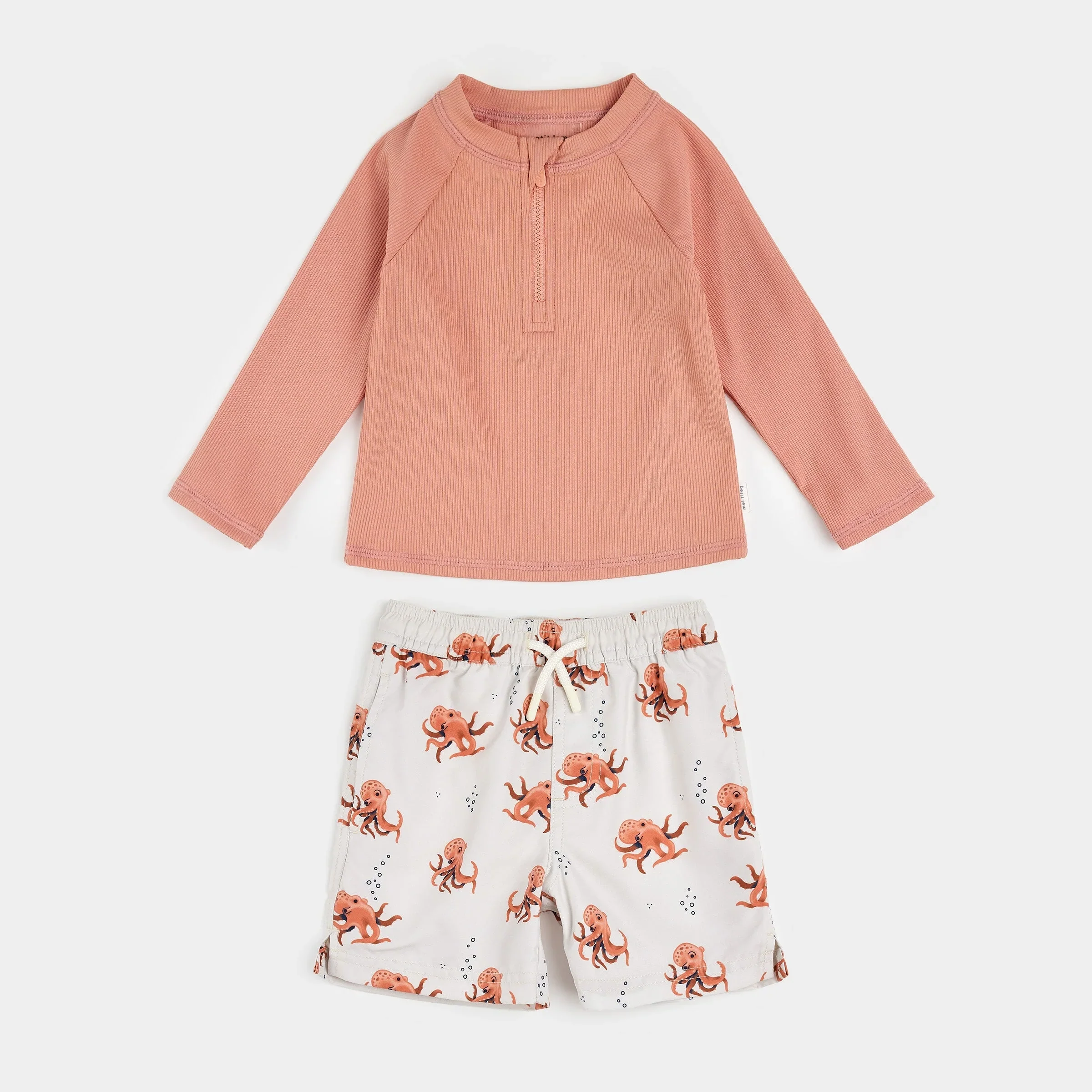 Ensemble De Bain Côtelée Corail À Imprimés Pieuvres (2mcx.)