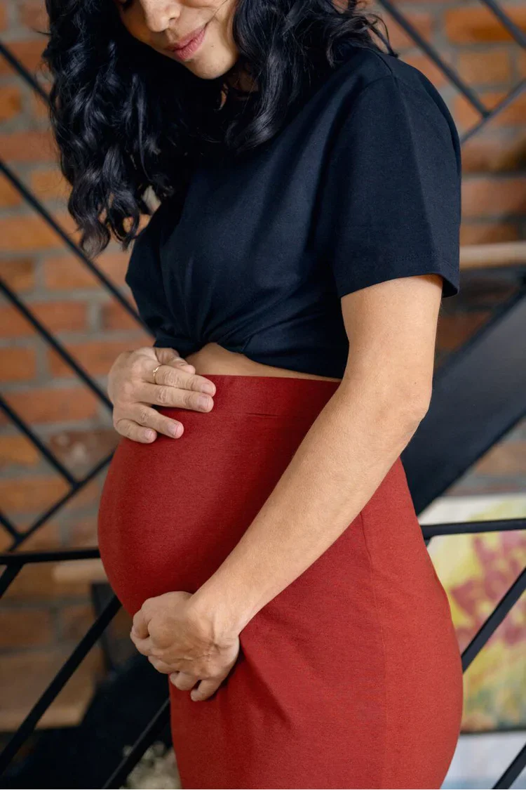Cette magnifique jupe au tissu extensible et léger s’aura s’adapter à toutes les étapes de votre maternité, vous offrant ainsi le confort et le style que vous mérité.