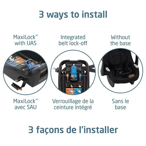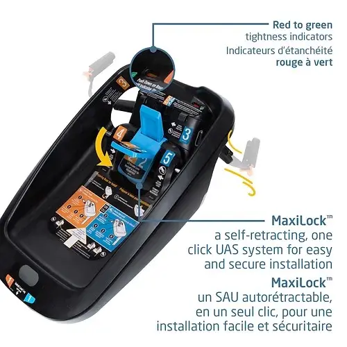 Grâce à la technologie MaxiLock™, une base intuitive et un système UAS aux couleurs rouge-vert, le Mico Luxe+ offre une installation sécuritaire et pratique.
