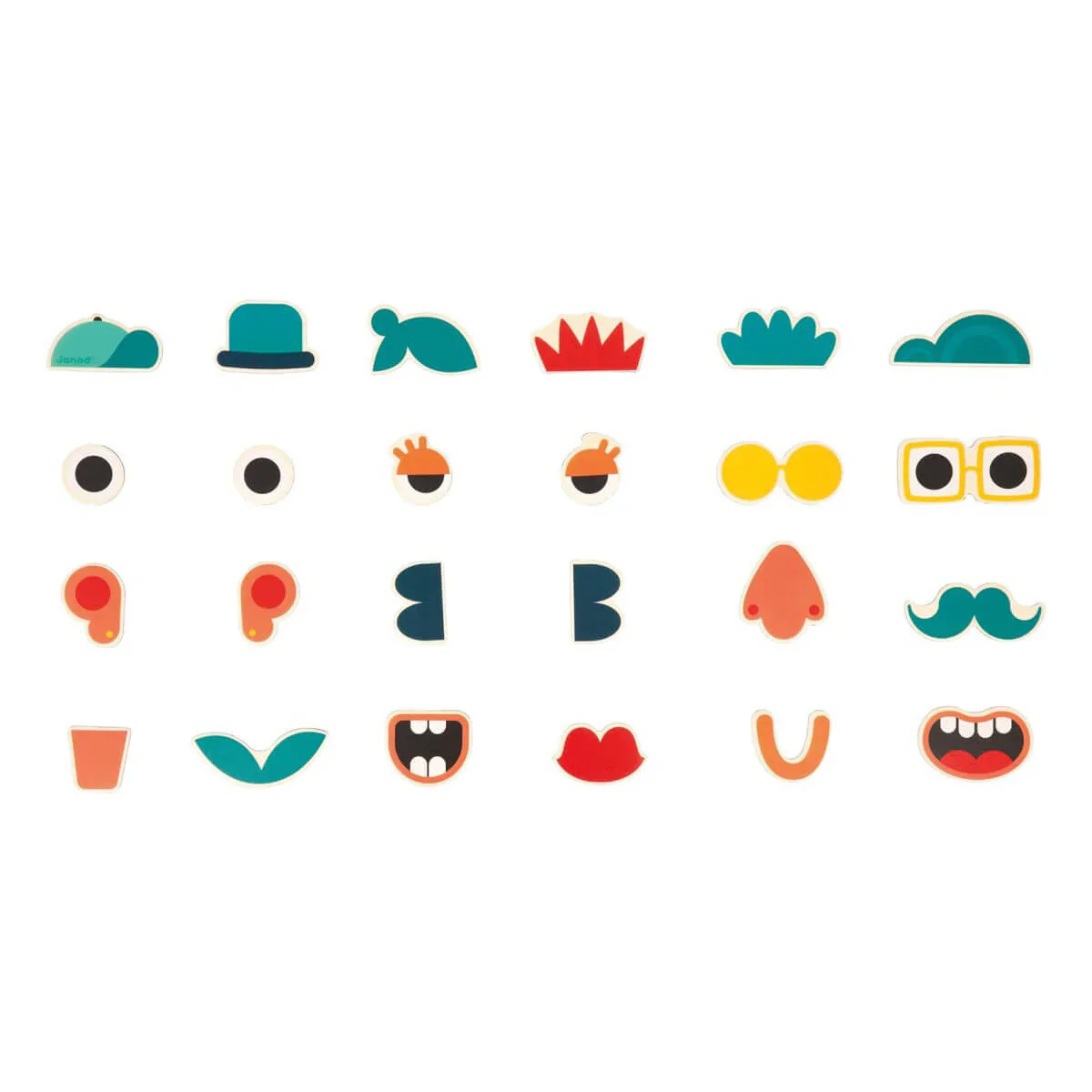 Avec ce lot de 24 magnets en bois Janod, les enfants à partir de 2 ans pourront décorer n’importe quelle surface magnétique ! Sur un tableau ou sur le frigo, ces magnets pour enfants feront rire petits et grands ! Ils devront également faire appel à leur mémoire pour assembler les pièces correspondantes.