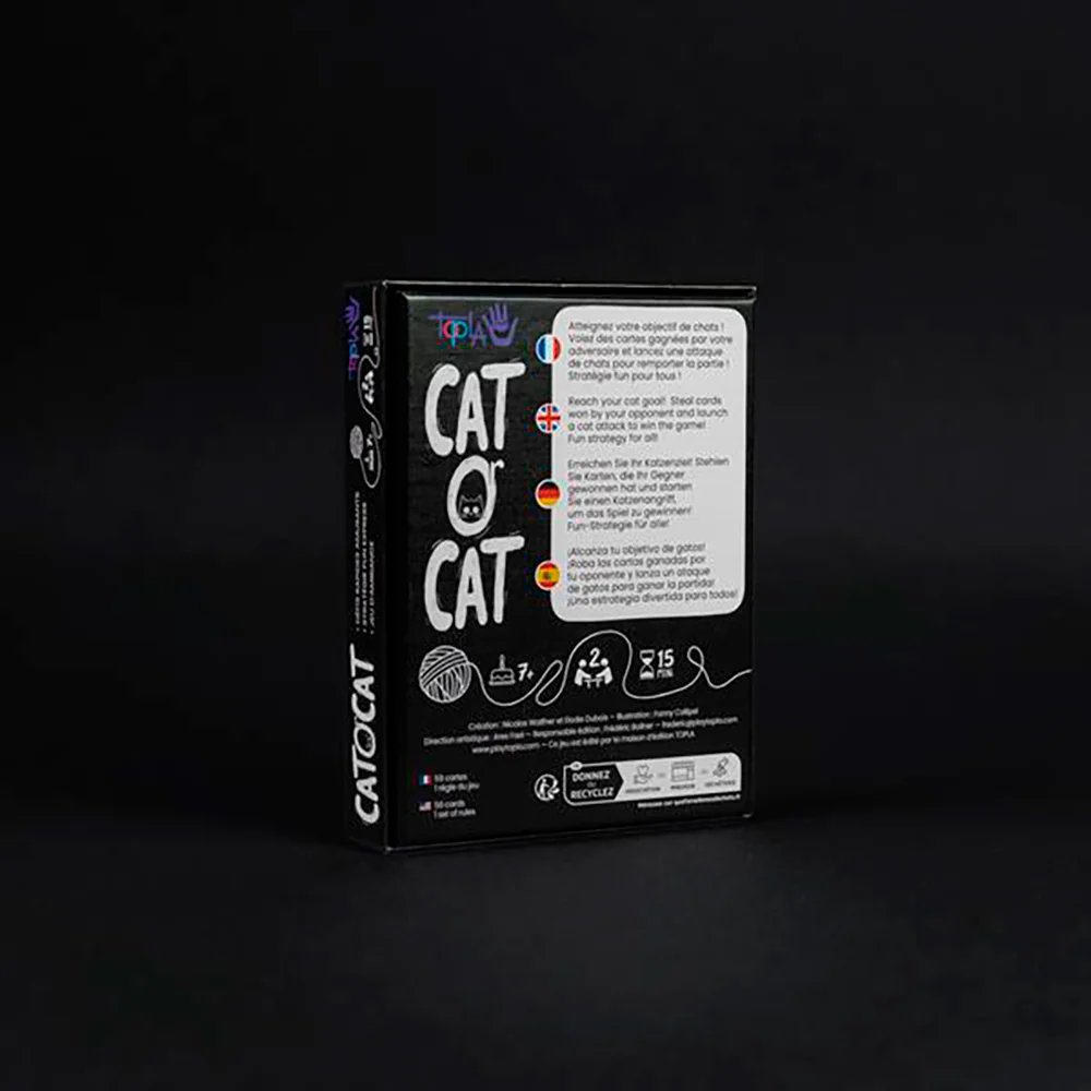 CATOrCAT est un jeu de cartes félin où la ruse prime ! À deux joueurs, collecte des cartes chats pour atteindre tes objectifs, mais attention : les chiffres au dos ne sont pas toujours ceux que tu crois. Vole les cartes gagnées par ton adversaire et déclenche une attaque féline pour remporter la victoire. Accessible à tous, ce jeu stimulant mélange plaisir, agilité mentale et rebondissements hilarants. Prépare-toi à des moments pleins de finesse et d’énergie positive !