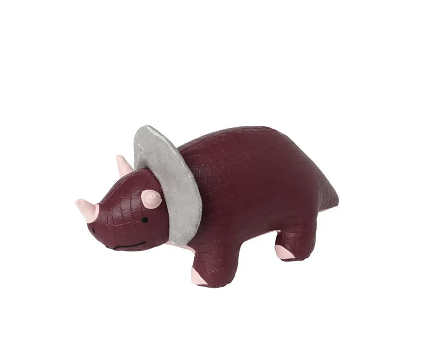 Pénélope le Triceratops est un adorable dinosaure aux couleurs vives qui égayera la journée de chaque enfant. Conçu en cuir vegan, Pénélope renferme un grelot qui tinte doucement à chaque mouvement. La matière texturée de son corps bordeaux, le toucher lisse de ces élements roses ainsi que sa crête argentée en tissu craquant éveilleront la curiosité des jeunes explorateurs.