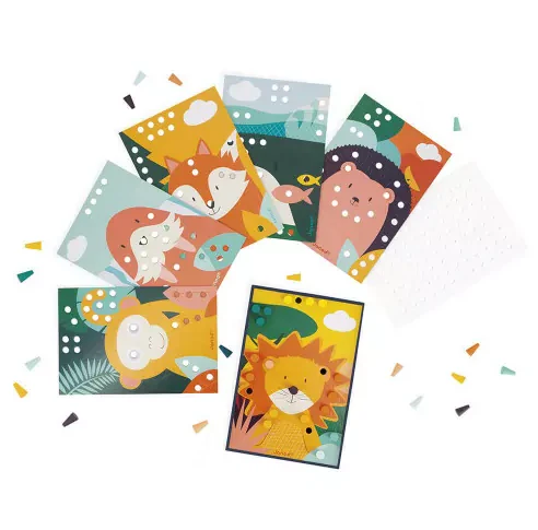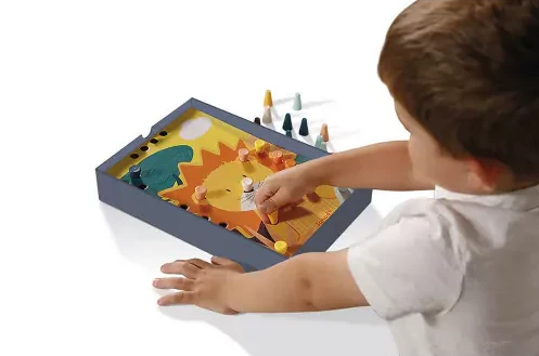 Ce jeu est idéal pour un temps calme avec les enfants. Les pièces ont été pensées pour les petites mains (1,5 cm de diamètre), pour une préhension facile. Malin : la boîte sert de support pour les cartes, il n’y a plus qu’à poser et à décorer. Une activité créative et amusante, où les enfants apprendront les noms des animaux, les couleurs et aussi leurs nuances. Pas besoin de colle, c’est une activité que les enfants prendront plaisir à recommencer encore et encore.