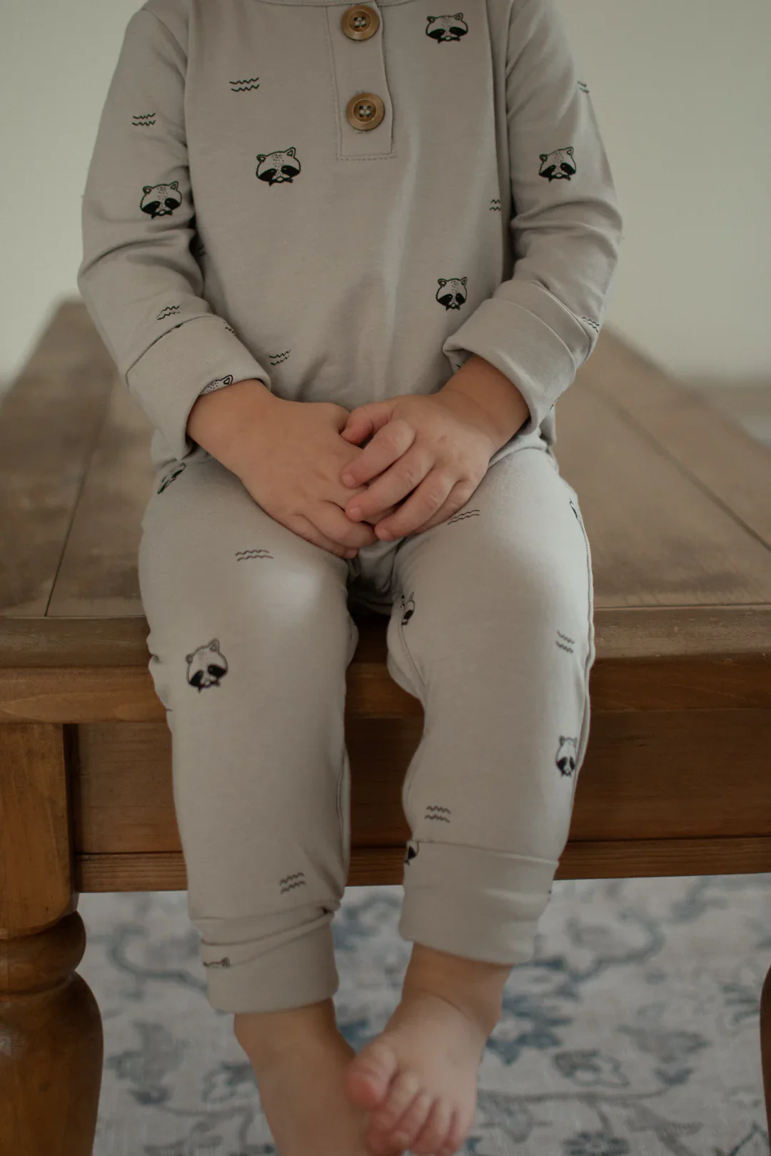 Onesie Évolutif Gris Motif Ratons Laveurs