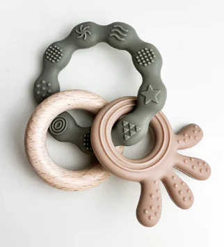 Polyvalent et sûr, ce jouet de dentition est un compagnon idéal pour accompagner votre bébé pendant cette étape clé de son développement. Offrez à votre enfant le confort et le soulagement dont il a besoin avec notre jouet de dentition en silicone, conçu pour être à la fois apaisant et ludique. »