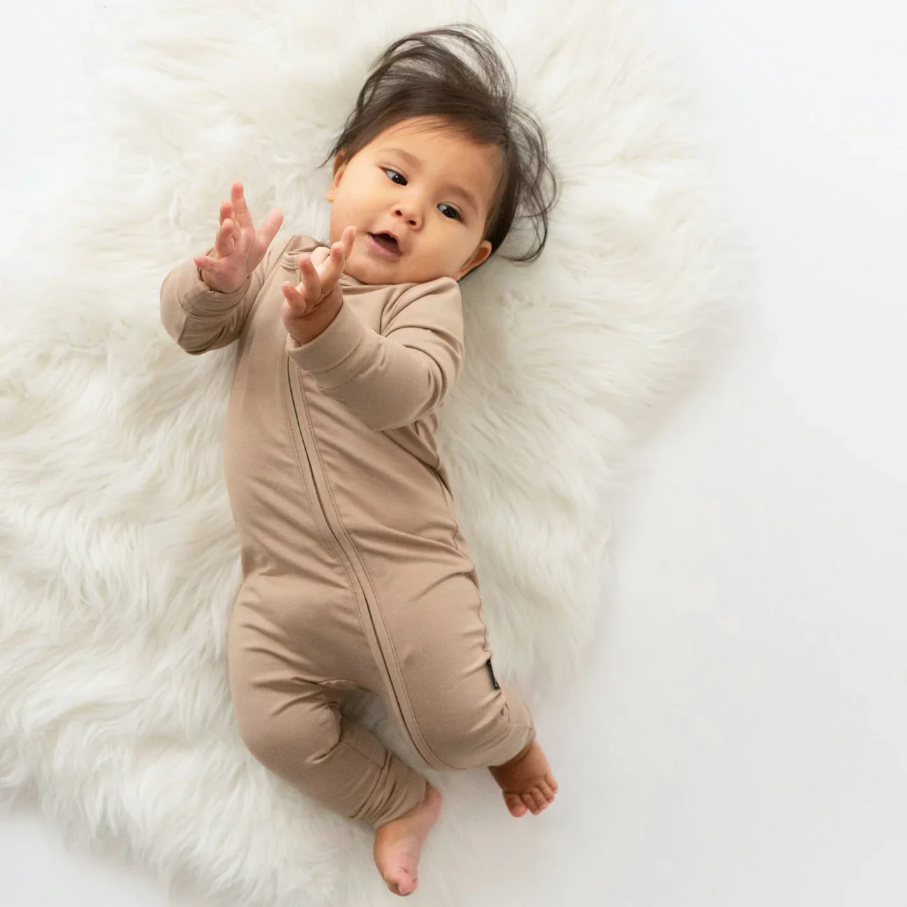 Grenouillère sans pieds confectionnée en rayonne de bambou douce et de qualité supérieure pour une nuit de sommeil parfaite. Le bambou est respirant et évacue l’humidité, ce qui en fait le tissu idéal pour les vêtements de nuit pour bébé. La fermeture à glissière YKK à double sens facilite le changement des couches, tandis que les poignets rabattables et le protège-menton protègent bébé des égratignures et des pincements. La grenouillère est dotée de poignets rabattables pour offrir la possibilité de couvrir les pieds lors des nuits plus fraîches. Les poignets rabattables sur les manches ne sont disponibles que pour les tailles 6 à 12 mois.