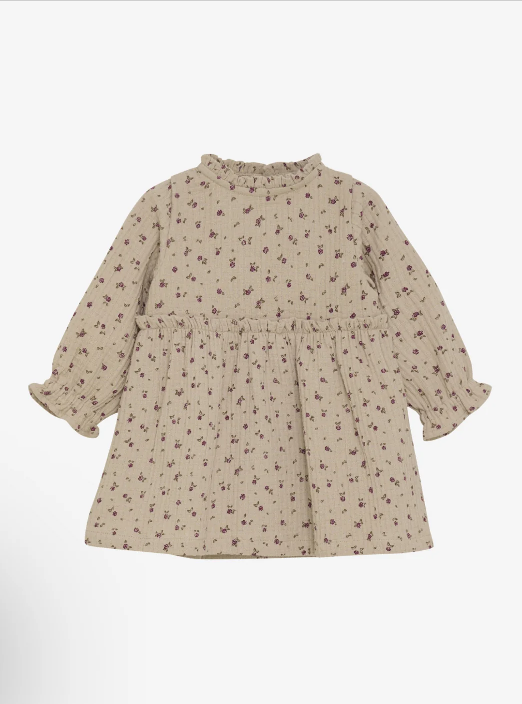 Robe À Manches Longues Oxford Tan Avec Fleurs