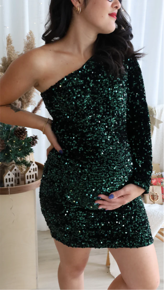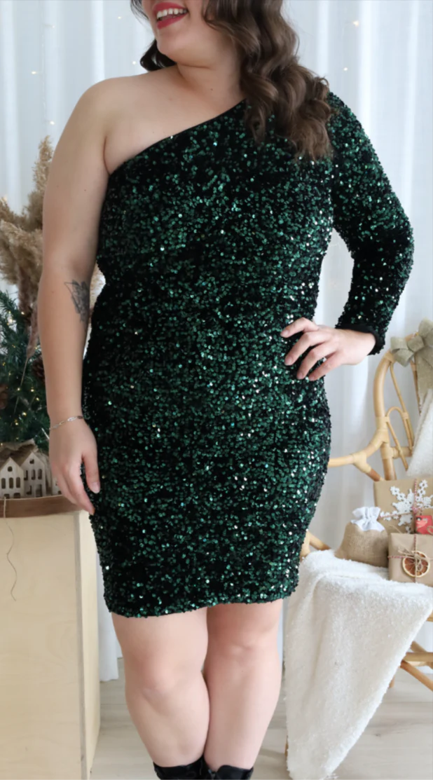 Soyez le premier à laisser votre avis sur “Robe Félicia À Pailettes Vert Foncé”