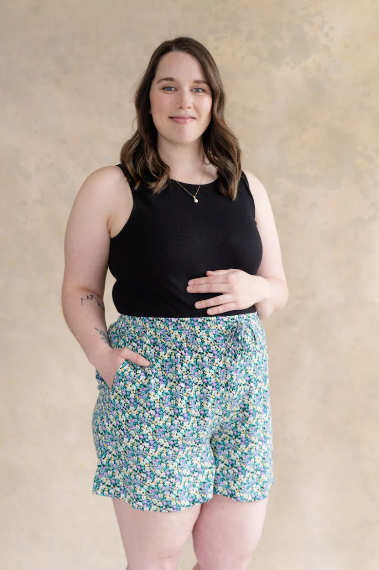 Le short à taille élastique fleuri est un choix estival et féminin pour les journées ensoleillées.