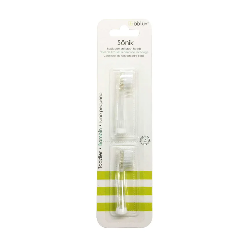Ce produit consiste en 2 brosses de remplacement pour la brosse à dents électrique pour bébé Sönik.