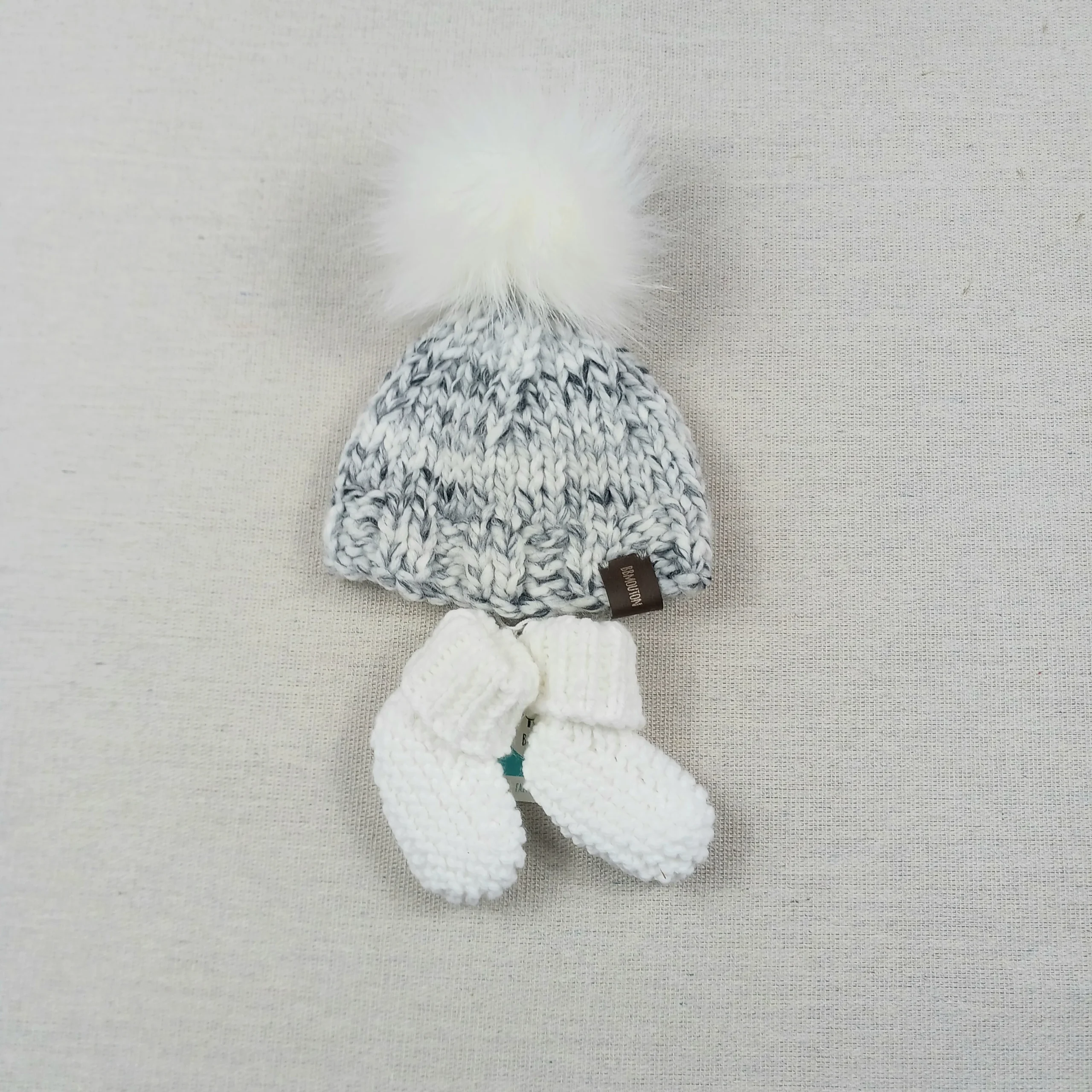 Tuque Blanche Et Grise Avec Bas Blanc (Naissance)